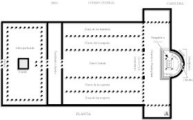 Cómo vemos en la imagen, tenemos la planta de una basílica cristiana (ya adaptada) en la cuál apreciamos las distintas partes, que además explicaremos a continuación: